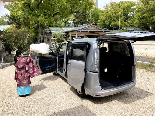 神前にて交通安全のご祈祷を行い、「車祓所」にてお車をお祓いいたします。